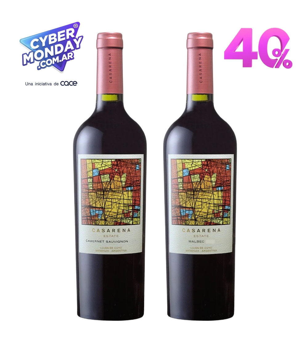 Llevando una botella de Casarena Estate Malbec + una botella de Casarena Estate Cabernet Sauvignon te regalamos un 40% de descuento!